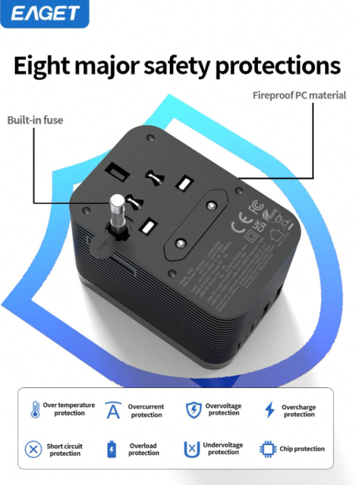 - تصميم آمن مع حماية من زيادة التيار والشحن الزائد.