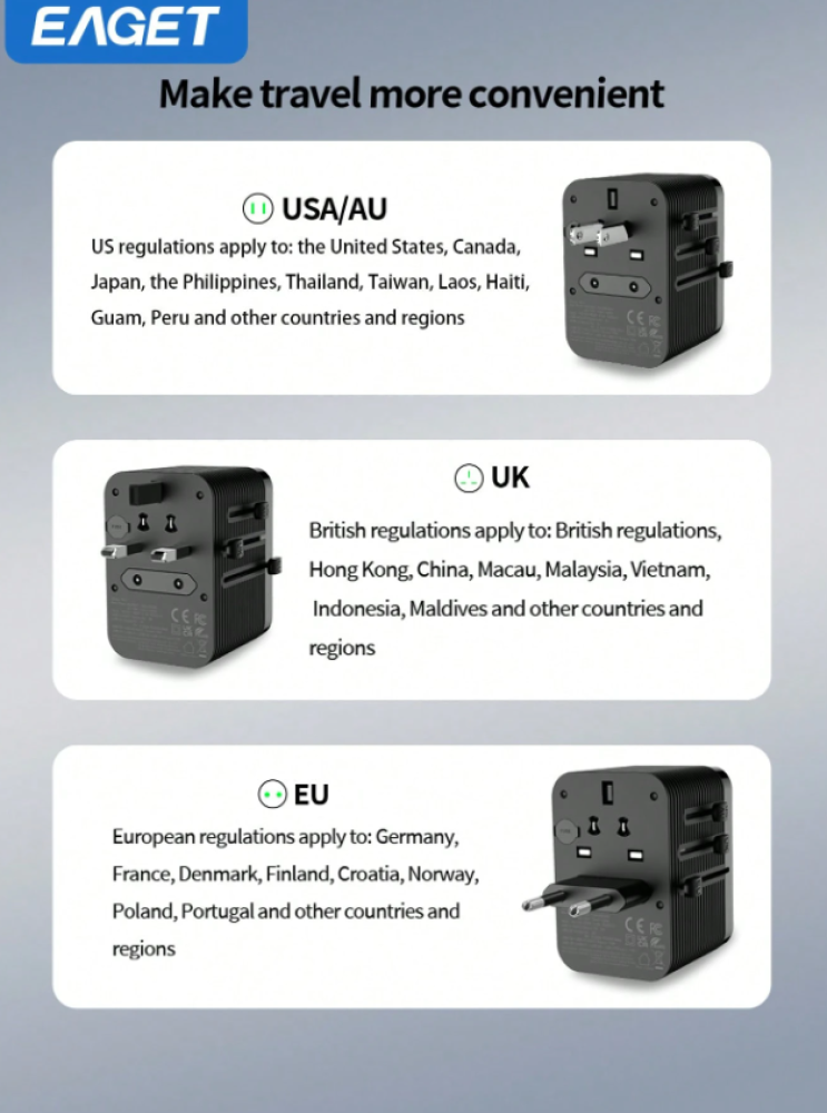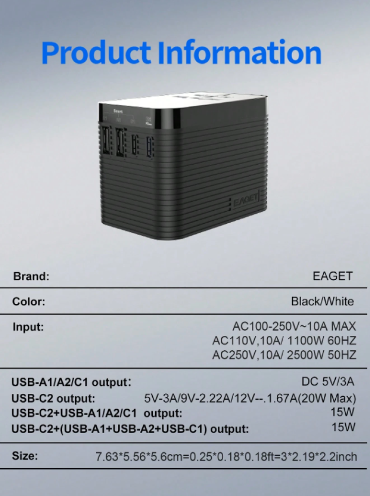 - مثالي لشحن الجوال, اللابتوب, الكاميرا, وأجهزة السفر الأخرى.